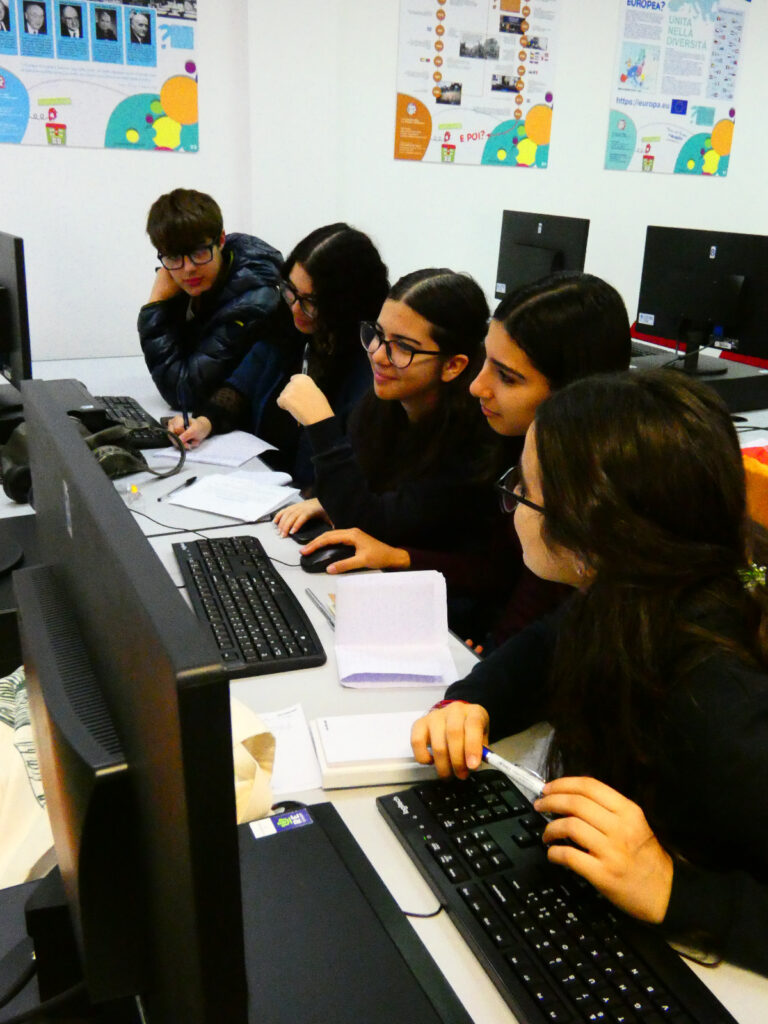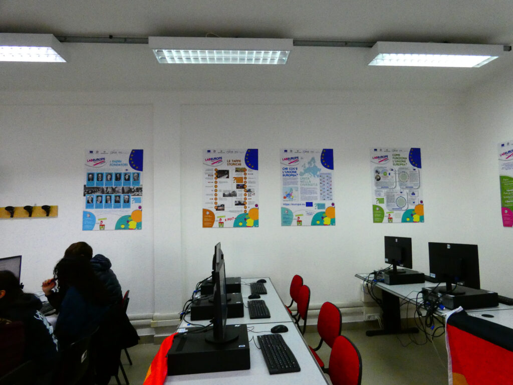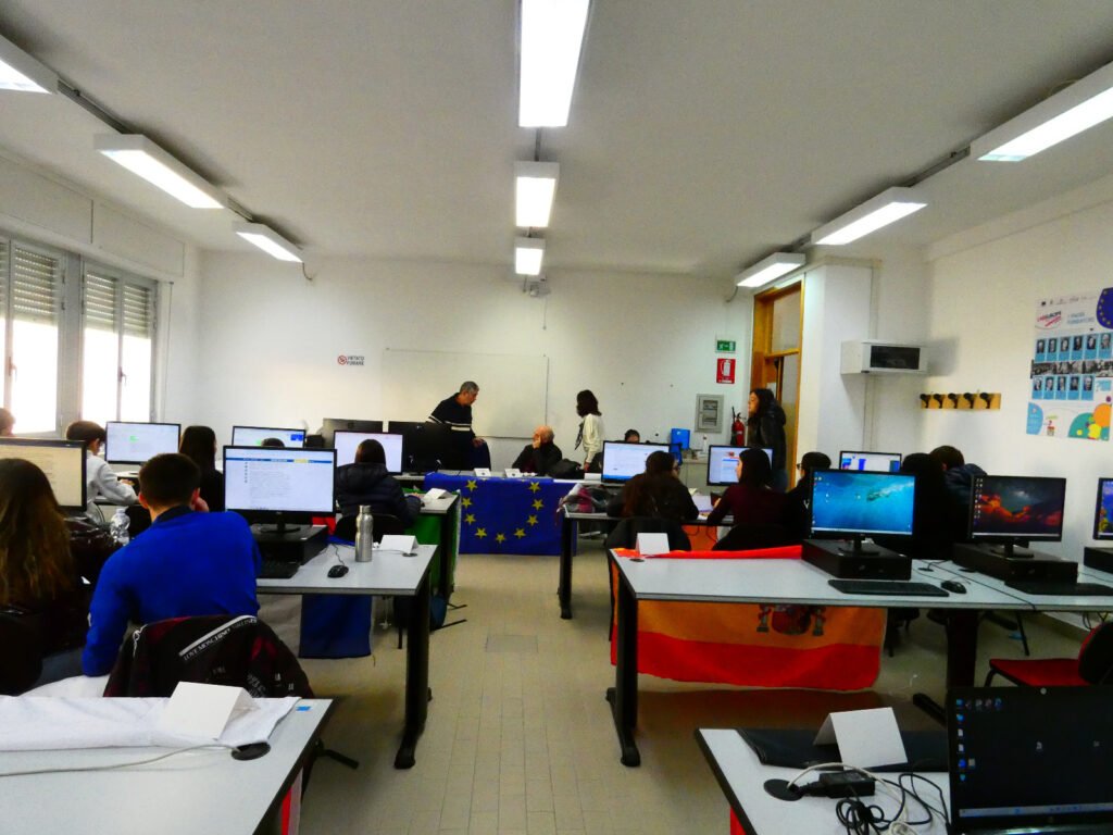A fare gli onori di casa le vicepresidi prof.sse Chiara Muggittu e Gabriela Mastio, che hanno messo a disposizione il Lab Europe dell’ITC “1-2 Chironi-Satta” Sede Biscollai, dove si è svolto l’evento.